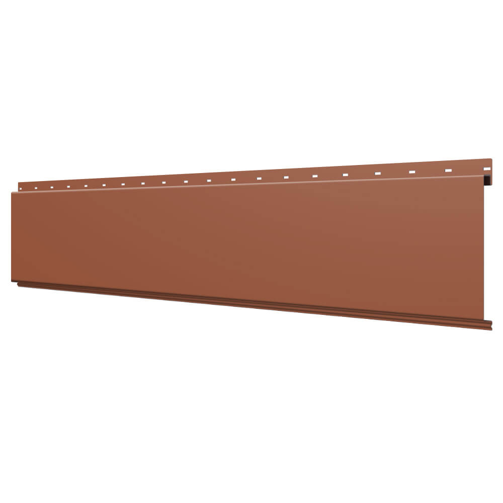 Линеарная потолочно-стеновая панель ГЛАДКАЯ цвет RAL8004 Терракотовый применяется в качестве софитов для подшивы крыши, наружной и внутренней отделки потолков, стен, фронтонов фасада дома в Йошкар-Оле.