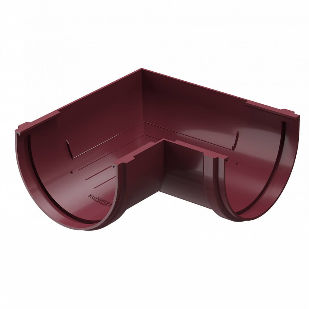 Угловой элемент желоба универсальный ДЕКЕ STANDARD d120мм 90 градусов цвет RAL 3005 Красный в Йошкар-Оле. Угловые элементы устанавливаются как на внешних, так и на внутренних углах кровли и предназначены для соединения желобов.