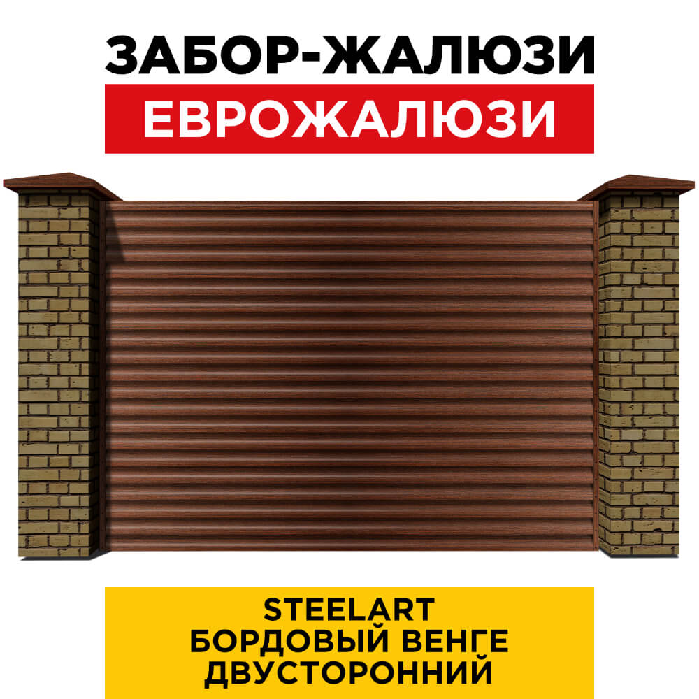 Ламель Еврожалюзи металлическая S-образная, цвет под дерево Бордовый Венге SteelArt Россия двухстороннее покрытие, длина любая кратно 1см под заказ - для забора-жалюзи, беседки, перголы в Йошкар-Оле