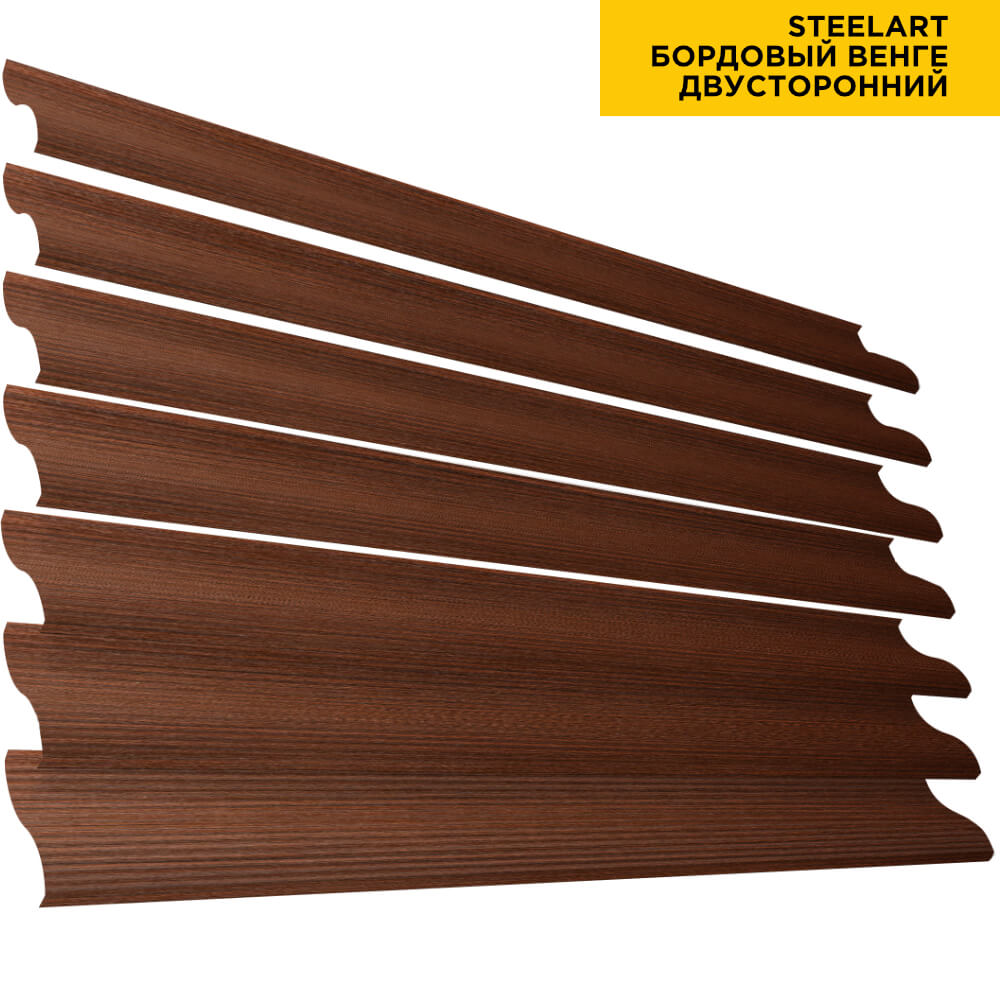 Ламель Еврожалюзи металлическая S-образная, цвет под дерево Бордовый Венге SteelArt Россия двухстороннее покрытие, длина любая кратно 1см под заказ - для забора-жалюзи, беседки, перголы в Йошкар-Оле.